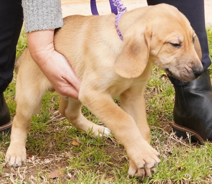 Die Mutter von Copper ist eine größere Hündin, der Vater ist unbekannt. Aufgrund der Größe der Mutter wird Copper ein größerer Rüde werden.