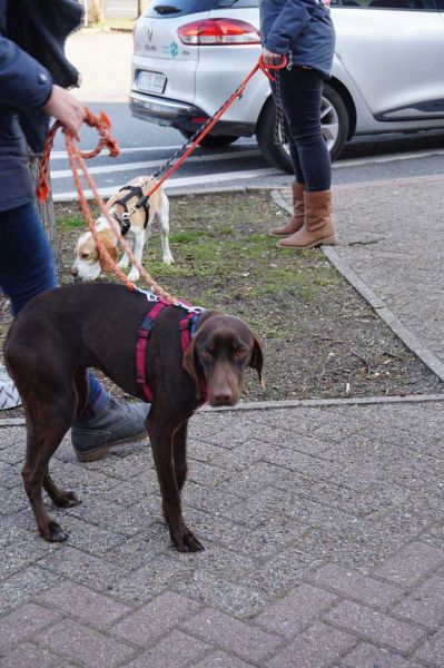 Die Nase vorn hatte der schöne Benedict, der die Tötung auf Zypern hinter sich lassen konnte und nun das Leben seiner neuen Familie ordentlich auf Trab bringen wird. Aufgeschlossen und neugierig zog er mit seinen Menschen los. Das anfängliche Leinenchaos war schnell überwunden und ein vorbildlich an der Leine laufender Benedict konnte die weitere Heimreise antreten. Wir wünschen dir nur das Allerbeste, kleiner Charmeur!