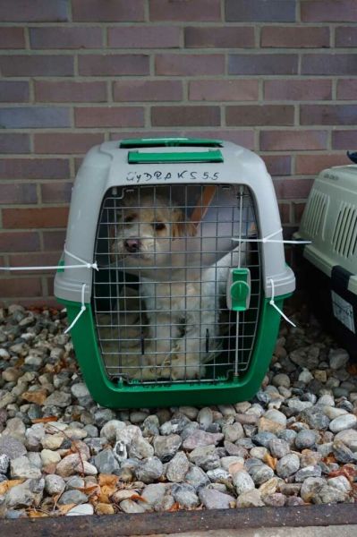 Der ängstliche Alvin2 schaute überaus skeptisch aus seiner Box, nahm aber zumindest die angebotene Fleischwurst dankend an. Zum Glück waren seine Menschen vorgewarnt, so dass Alvin2 ganz unaufgeregt in seiner Reisekiste ins Auto verfrachtet wurde und die ersten Schritte auf deutschem Boden einfach in sein neues Zuhause verlagerte. Dort darf der wuschelige Rüde in Ruhe ankommen und wird sich bestimmt schnell an die Annehmlichkeiten der Rundum-Sorglos- Verpflegung gewöhnen.