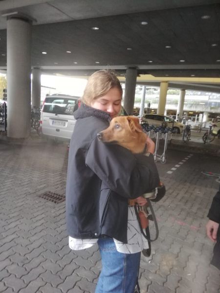 Eric2 machte schon im Sicherheitsbereich lautstark auf sich aufmerksam, so dass für die Wartenden keine Gefahr bestand, die Ankunft ihrer neuen Familienmitglieder zu verpassen. Um des lieben Friedens willen wurde der kleine Krachmacher dann auch als erstes aus seiner Box befreit und an sein neues Frauchen übergeben. Diese schloss ihn überglücklich und mit Tränen der Rührung in den Augen in die Arme und konnte kaum fassen, dass Eric2 nun endlich für immer bei ihr angekommen ist.