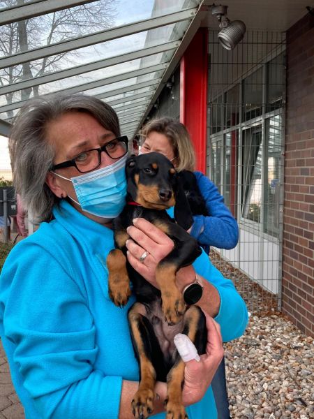 Frisia wurde von ihren Menschen glücklich in die Arme genommen und konnte ihr Glück vor lauter Streicheleinheiten kaum fassen.