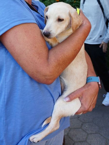 Dann war da noch die bezaubernde kleine Mischlingshündin Ariana, die die Reise mit 3 ihrer insgesamt 6 Kinder angetreten hatte. Sie kam aus ihrer Box und alle waren sofort Feuer und Flamme für das zarte Hundepersönchen. Aufgeschlossen und zutraulich wie sie ist, wollte sie gleich mit jedem kuscheln und konnte gar nicht genug Aufmerksamkeit bekommen. Ihr Körbchen auf Zeit hat unsere liebe Ariana auch schon gefunden.