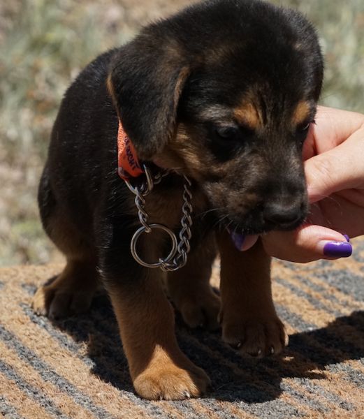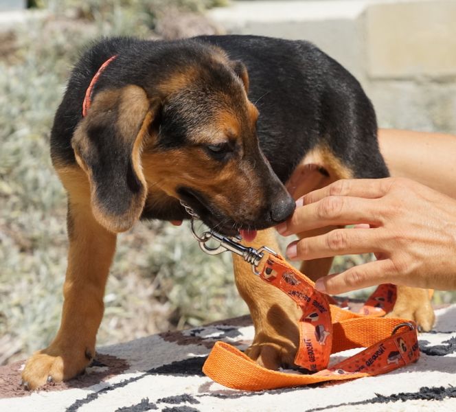 Er ist ein ganz normaler Welpe, der sich gut mit anderen Hunden versteht und auch Katzen gegenüber neutral verhält. Ein unerschrockener kleiner Kerl, der auch gerne Kinder um sich hat. Altersgemäß würde ihm natürlich ein Besuch in der Hundeschule nicht schaden. Er ist noch etwas ungestüm, wobei er schon ganz gut an der Leine läuft. Nur lässt er sich noch gerne ablenken und muss noch lernen, dass es wichtig ist mehr auf seine Menschen zu hören.