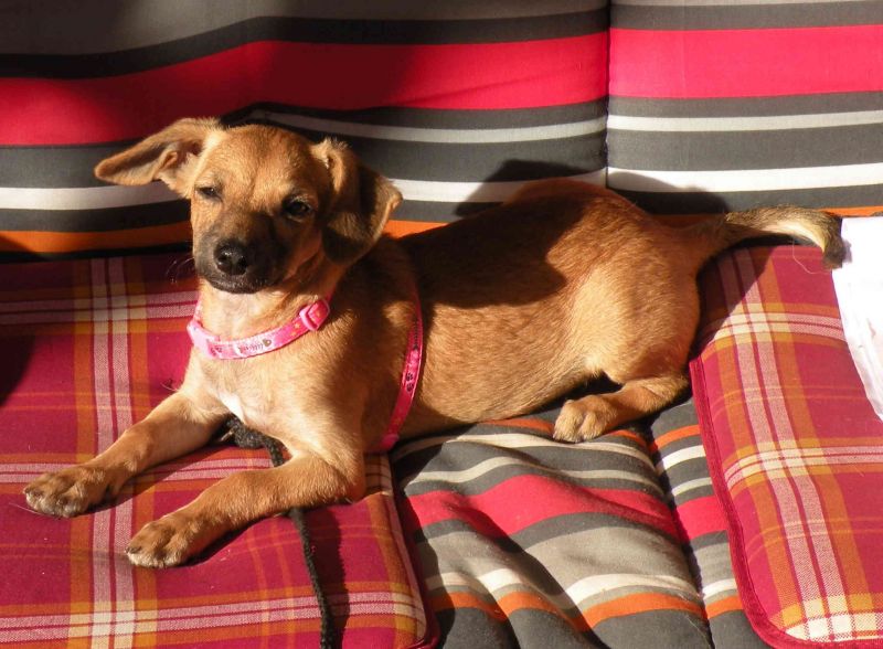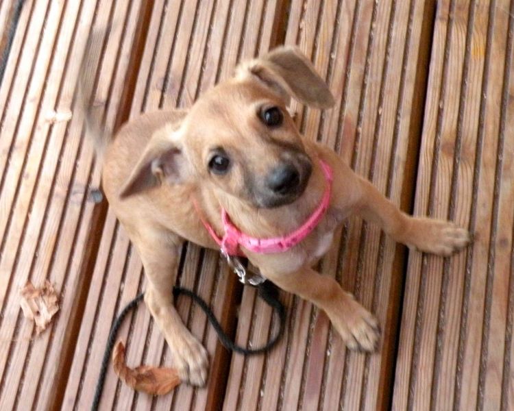 Beanie braucht etwas zu tun, sonst sucht sie sich selbst mindestens 2 Aufgaben gleichzeitig. Zur Zeit verteidigt sie unsere Terrasse gegen die Kühe, die auf der weiter entfernten Wiese weiden. Das kleine Mädchen passt gut auf ihre Menschen auf und bellt auch schon mal. Sie ist deshalb eher in ländlicher Umgebung und eigenem Haus gut aufgehoben. Kinder sollten schon etwas älter sein.