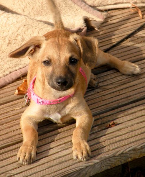 Die kleine Beanie wird bei uns in der Pflegestelle in 27404 Zeven Bienchen gerufen, weil sie so eine entzückende kleine Hummel ist. Entzückend und klein, aber mit einer großen Portion Selbstbewusstsein ausgestattet tappelt sie hier bei uns durch Haus und Garten.
