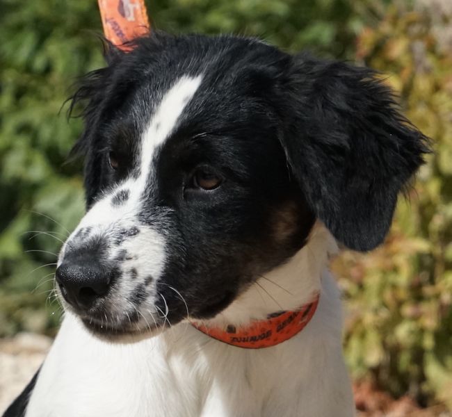 Mit seinen 7 Monaten ist er ein sehr aktiver, verspielter Junghund, der zur Zeit ca. 45cm groß ist und etwa 11kg wiegt.