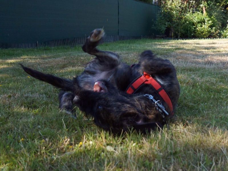 In seinem Zuhause auf Zeit zeigt Diego3 sich von seiner besten Seite. Mit den vorhandenen Hunden kommt er prima aus, da er klug genug ist ihre Grenzen einzuhalten, wenn seine junghundtypisch euphorischen Spieleinladungen dankend abgelehnt werden. Dabei ist er sehr höflich und kann die Körpersprache seines Gegenübers gut einschätzen. Im Garten tobt er auch allein über die Wiese, jagt Spielzeugen hinterher, aalt sich genüsslich in der Sonne oder zupft Grashalme. Hinterher schmeißt er sich im kühleren Haus erst einmal für ein gepflegtes Nickerchen auf den nächsten Teppich - Diego3 weiß das Leben zu genießen…