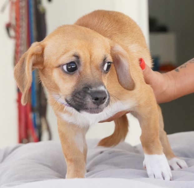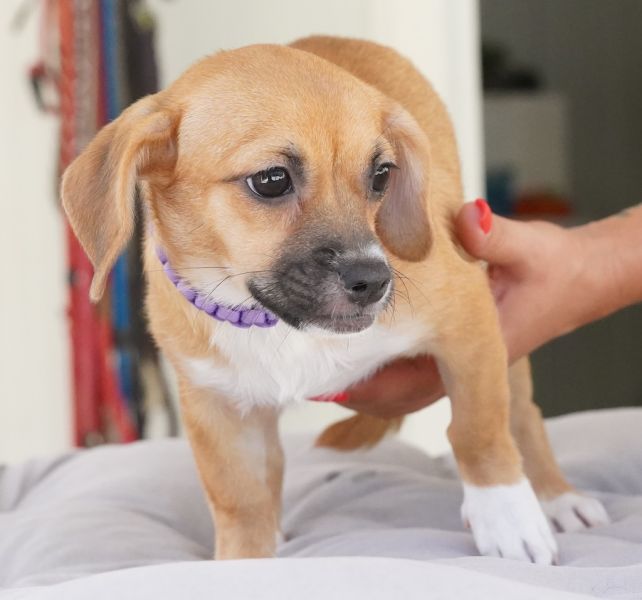 Mit anderen Hunden ist die Lütte gut verträglich; sie zeigt sich welpentypisch aufgeschlossen und unterwürfig, so dass sie sich durchaus über einen Hundekumpel im neuen Zuhause freuen würde.