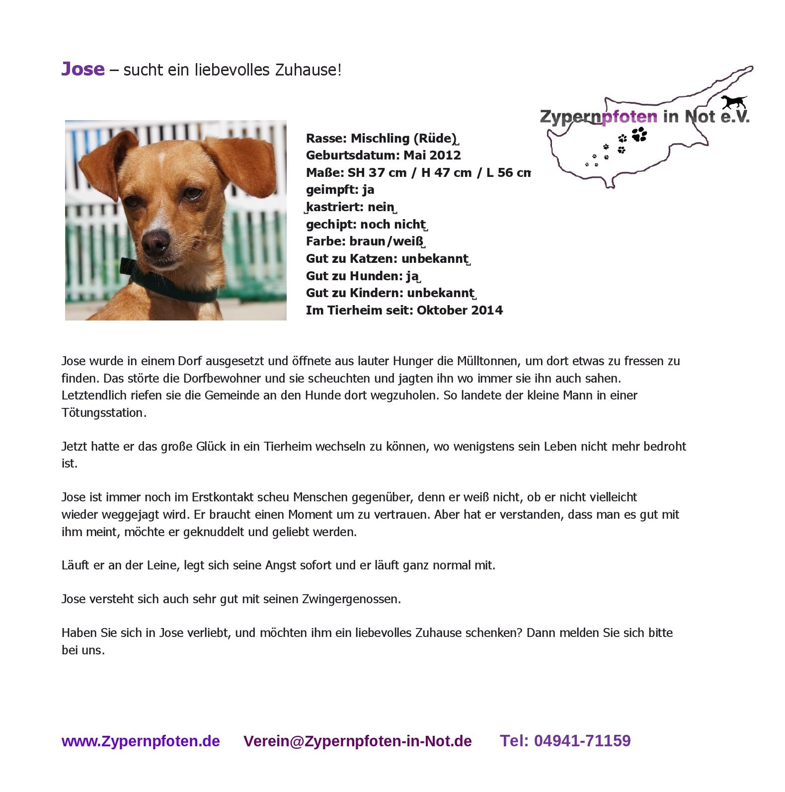 Haben Sie sich in Jose verliebt, und möchten ihm ein liebevolles Zuhause schenken? Dann melden Sie sich bitte bei uns.