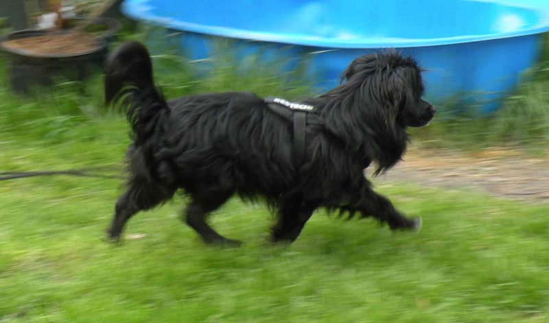 Der kleine Leo2 ist nun seit ein paar Tagen bei uns in 27404 Zeven in der Pflegestelle und hat sich sehr gut eingelebt. Er ist ein aufgewecktes, fröhliches, temperamentvolles und verschmustes Kerlchen. Ein kleines schwarz-weißes Fliegengewicht mit kuschelig-weichem Fell und zwei blitzblanken, seelenvollen Augen. Mit unseren 3 Hundeladys hat er sich gleich sehr gut verstanden. Erstaunt waren wir, als der klitzekleine Leo und die wirklich riesengroße weiße Nana gleich am ersten Abend ausgelassen zusammen spielten (siehe Video). Das machen sie nun jeden Tag und haben viel Spaß dabei! Unsere Katzen sind für Leo immer noch ein Rätsel. Er ist durchaus an ihnen interessiert und testet aus, ob sie mit ihm spielen wollen, stößt er auf Ablehnung und Ignoranz, ist er etwas ratlos. Wenn eine Katze aber wegläuft, schießt er gleich hinterher, bleibt sie stehen, tut er so, als ob gar nichts los ist, oder er dreht gleich ab. Wir wissen, dass er den Umgang mit unseren Miezen noch veredeln wird, schließlich sind sie alle viel schwerer und größer als er und als so kleiner Hund kann man nie genug Freunde haben!
