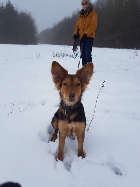 Ein junger Hund mit riesigen Ohren durfte endlich mit anderen Hunden toben, im Wald schnüffeln oder einfach mal seine 5 Minuten haben, weil das Leben, ohne Schmerzen so eine Freude macht!