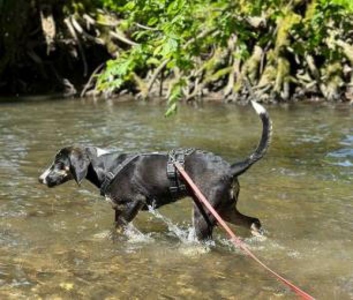 Es ist der Wahnsinn, was es hier alles zu erleben gibt! Ich gehe total gerne im Wald spazieren. Neulich haben wir einen Ausflug zu einem Bach gemacht, das war ein tolles Abenteuer für mich. Die anderen Fellnasen holten immer Stöckchen aus dem Wasser. Als ich dies eine Weile beobachtete, wollte ich es auch mal ausprobieren und hey, das macht mir riesigen Spaß! Am nächsten Tag sind wir nochmal zum Wasser gefahren und da hab ich erstmal gezeigt, dass ich natürlich auch schwimmen kann.