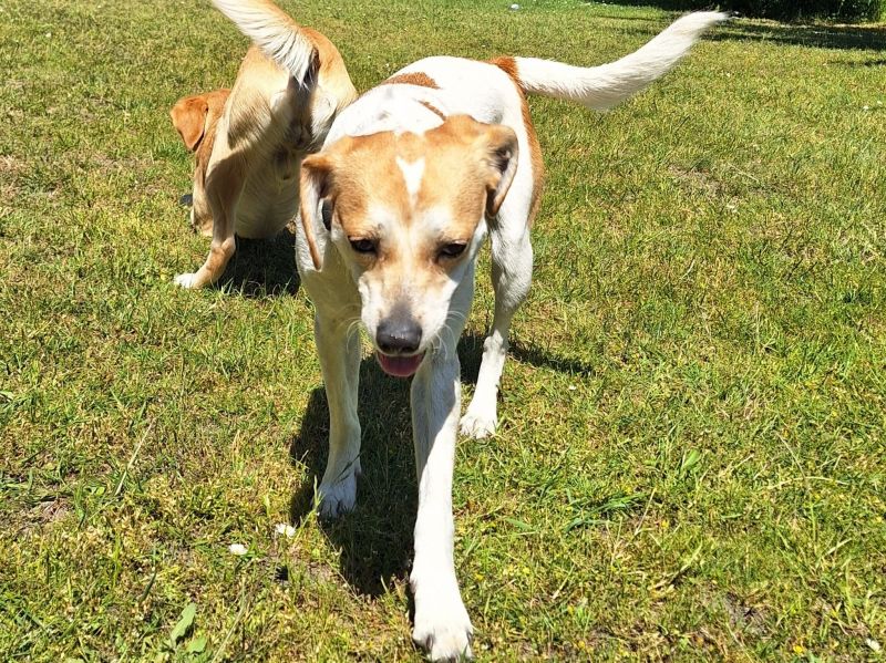 Mit anderen Hunden versteht sie sie sich super und lässt ein Spielzeug lieber liegen, um Streit zu vermeiden, so dass sie gern als Zweithund vermittelt werden kann.