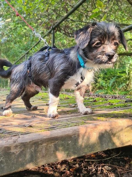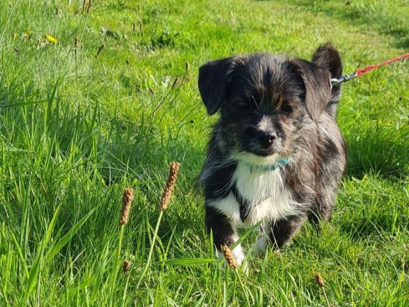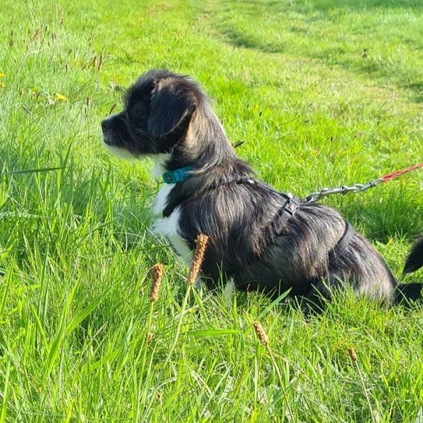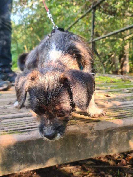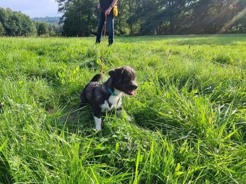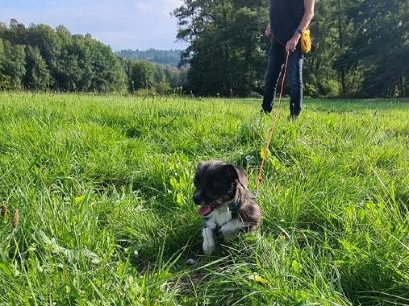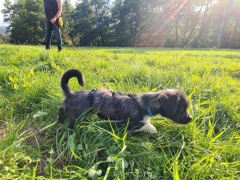 Ajax hat sich prima eingelebt und er orientiert sich gern an der Hündin der Pflegestelle. Die Vorteile des Lebens als Familienhund weiß er zu schätzen, er läuft im Alltag routiniert mit und weiß, was von ihm erwartet wird. Natürlich sticht ihn aber auch noch alle Nase lang der Hafer, denn wenn man ein ungefähr 6 Monate altes Hundekind ist, lassen sich die Prioritäten sehr flexibel verschieben und ein paar kleine Scherze hat Ajax immer auf Lager.