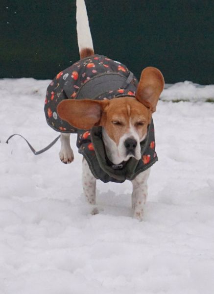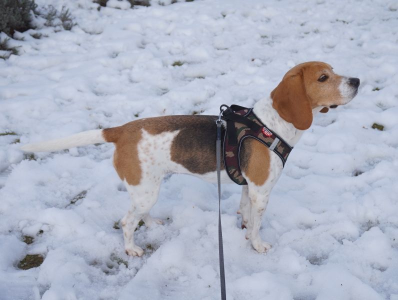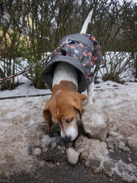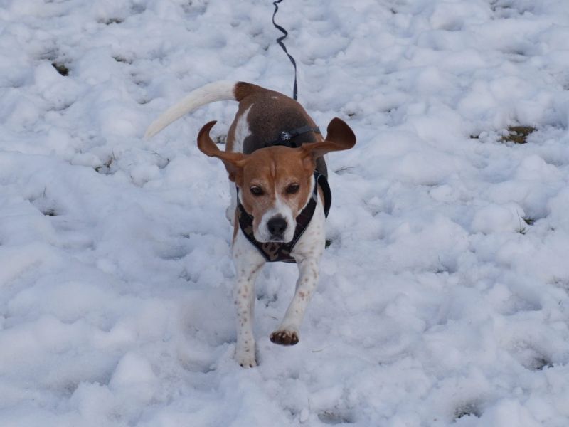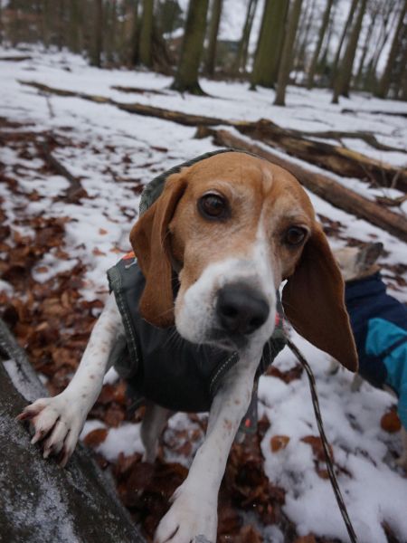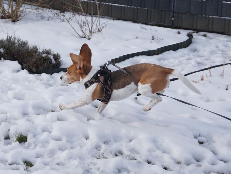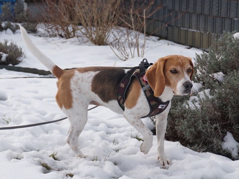 Sobald Victoria merkt, dass es zum Spaziergang losgehen soll, wird der Abenteür-Glanz in ihren Augen angeknipst. Sie lässt sich noch brav anziehen und geht auch ganz gesittet mit aus der Tür…und dann zack, Beagle-Nasen-Modus an, jetzt geht’s lo-hos! Die Beagle-Hündin geht mit großem Eifer und der Nase meist am Boden auf Erkundungstour in der Nachbarschaft und zeigt sich unerschrocken, was Geräusche angeht. Victoria ist bereits in vielen Situationen gut ansprechbar und überdreht nicht, Begeisterung hin oder her. Sicherlich würde sie sich im neuen Zuhause über aktive Outdoor-Hobbies gemeinsam mit ihren Menschen freün. Sie ist immer mit viel Freude und Energie unterwegs und läuft trotz aller Ablenkungen prima an der Leine, zumal sie mit ihren ca. 40 cm Schulterhöhe und 10,5 kg Gewicht eine sehr angenehme, mittlere Größe für sämtliche Aktivitäten mitbringt. Jedenfalls möchten sowohl Victorias Pfoten wie auch ihr Kopf abwechslungsreich ausgelastet werden, so dass sie zu Hause zufrieden zur Ruhe kommen und ein entspannter Familienhund sein kann.