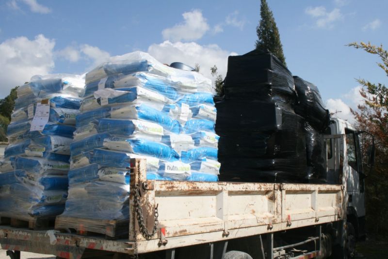 War der LKW voll kamen LKW und Gabelstapler den Berg herunter gefahren, um die von uns von außen ersichtlich reinen Futterpaletten direkt in unseren Futtercontainer zu stellen.
