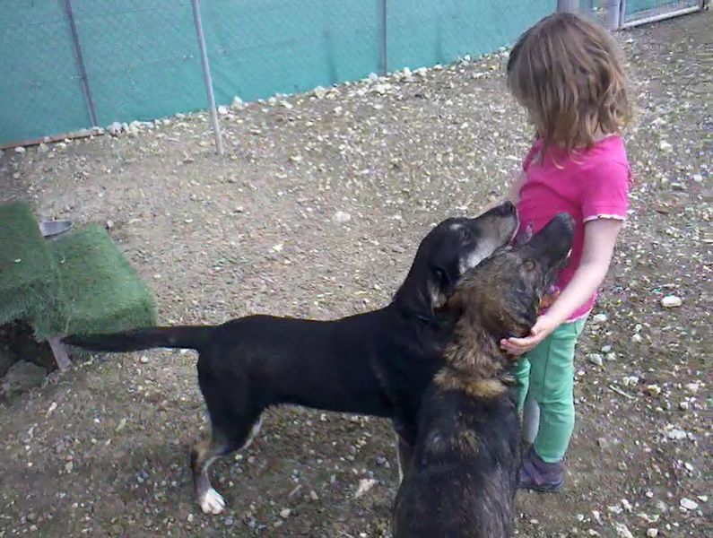 "Asco war Esther gegenüber super! Er war einer der Hunde, die von ihr als Kind total fasziniert war, er konnte gar nicht oft genug von sich aus zu ihr kommen, um sich streicheln und umarmen zu lassen. Esther konnte sich frei im Auslauf bewegen und herumturnen, ohne dass es Asco etwas ausmachte. Als sie einmal auf dem Boden lag, blieb er ruhig und ging aufmerksam mit ihr um.