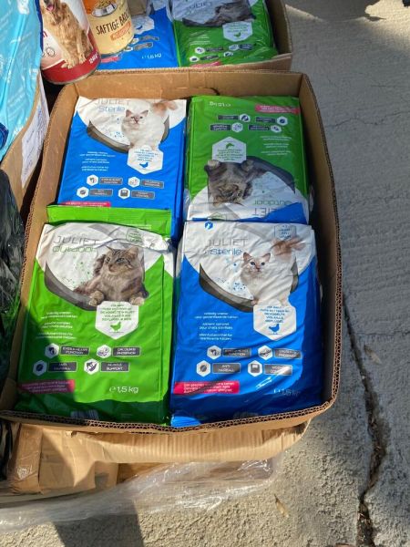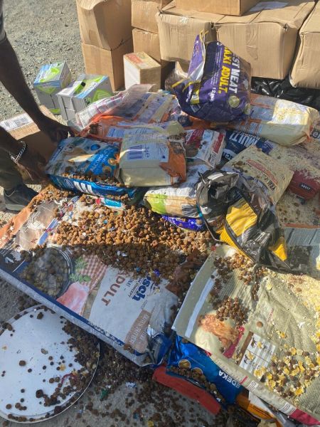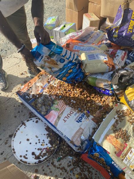 Leider gab es bei diesem Container auch einen sehr ärgerlichen Aspekt. Bereits bei der Lagerung in Hamburg kam es bei einigen Paletten zu einem Rattenproblem. Durch beschädigte Verpackungen und starke Gerüche wurden weitere Tiere angelockt, sodass mehrere Spenden unbrauchbar wurden. Einige Pakete rochen so intensiv, dass dies sogar für die Mitarbeiter der Firma Skyline deutlich wahrnehmbar war. Aus hygienischen Gründen und um nicht noch weitere Ratten anzulocken,mussten diese betroffenen Spenden kostenpflichtig entsorgt werden. Da es sich um Lieferungen für unseren Verein handelte, trägt Zypernpfoten in Not e. V. selbstverständlich auch die Entsorgungskosten – ein finanziell nicht unerheblicher Mehraufwand, da solche Entsorgungen in Deutschland sehr teuer sind.