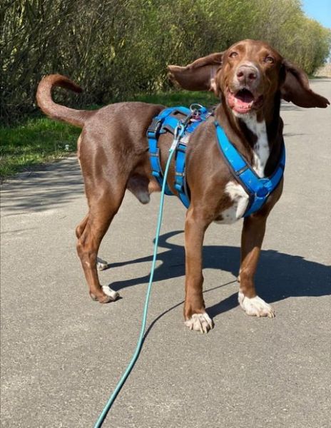 Paddy orientiert sich sehr an Vee, sie kann ihm oft helfen, wenn Paddy nicht weiß, wie er sich Verhalten soll. Von seiner Leishmaniose merkt man kaum etwas, ab und an machen ihm lediglich seine großen Schlappohren zu schaffen, mit Ohrentropfen wird's dann schnell wieder. Sein Gleichgewichtsproblem ist wesentlich besser geworden, auf Treppen sollte man ihn nicht zu weit voraus laufen und im See nicht zu weit alleine raus schwimmen lassen, um auf der sicheren Seite zu sein, wenn er kurz eine Anlehnung benötigt. Er fängt sich danach aber sofort wieder.