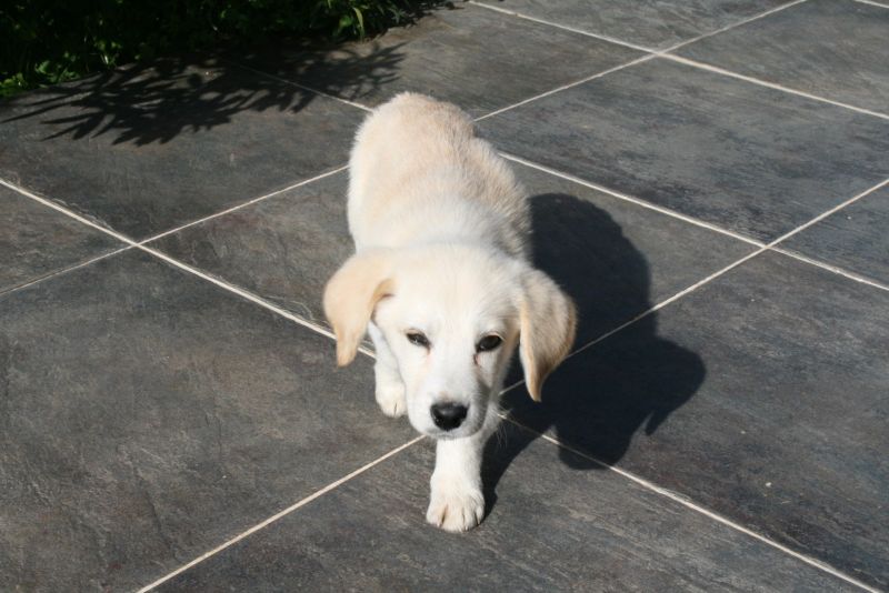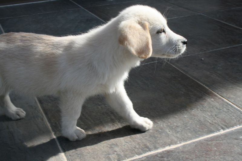 Poppy war die ersten zwei Tage scheu, ließ sich schwer anfassen. Wir gehen davon aus, dass sie bei den Menschen die sie erst hatten gescheucht wurde. Inzwischen hat sie verstanden, dass sie keine Angst mehr haben muss und ist jetzt ein fröhliches kleines Welpenmädchen.