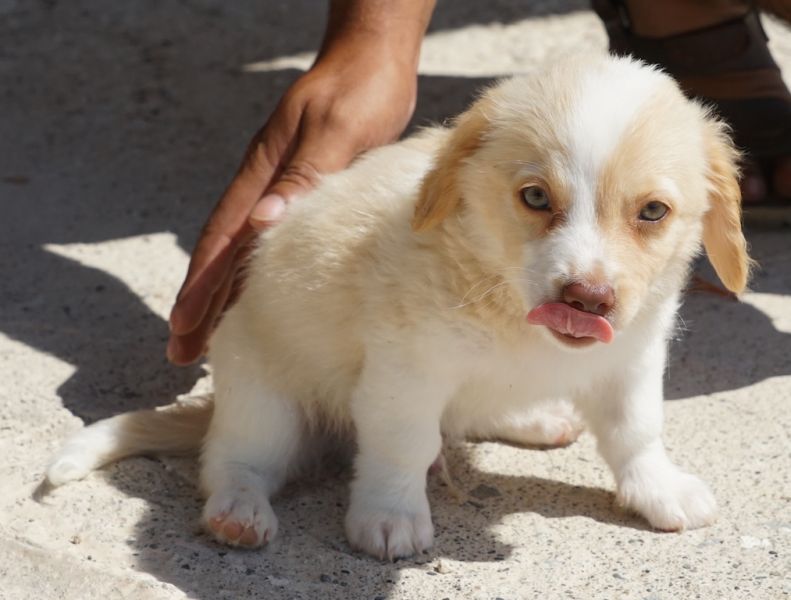 Raik wurde mit weiteren neun Welpen auf zwei Pappkartons verteilt vor den Toren eines Tierheimes ausgesetzt.