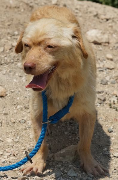 Es machte auf uns den Eindruck, dass er sein Leben bisher in einem Zwinger – auf jeden Fall ohne Spaziergänge – mit nicht all zu viel und schlechtem Futter verbracht hatte.