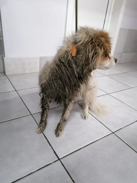Total matschig kam sie zu unserem Tierarzt, der sie untersuchte, bevor sie ins Tierheim kam.